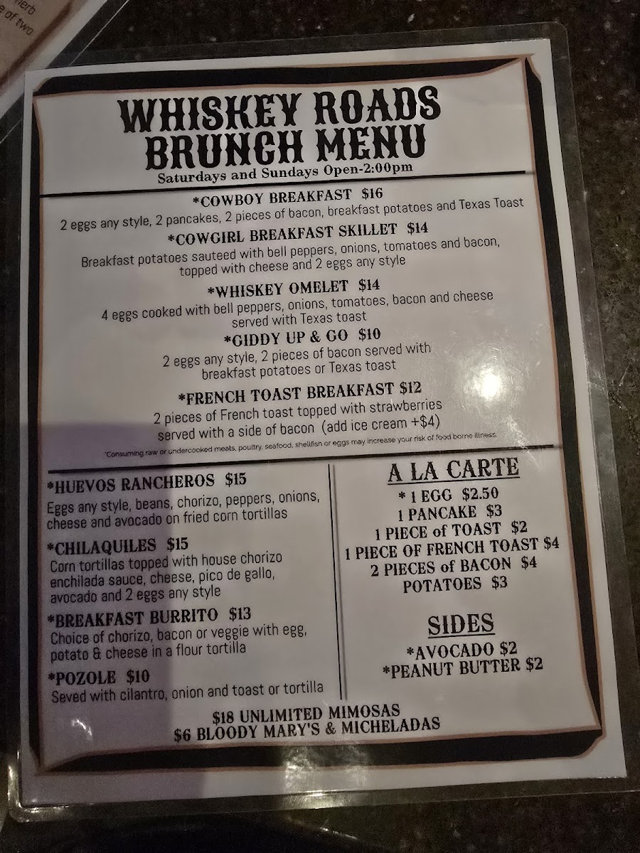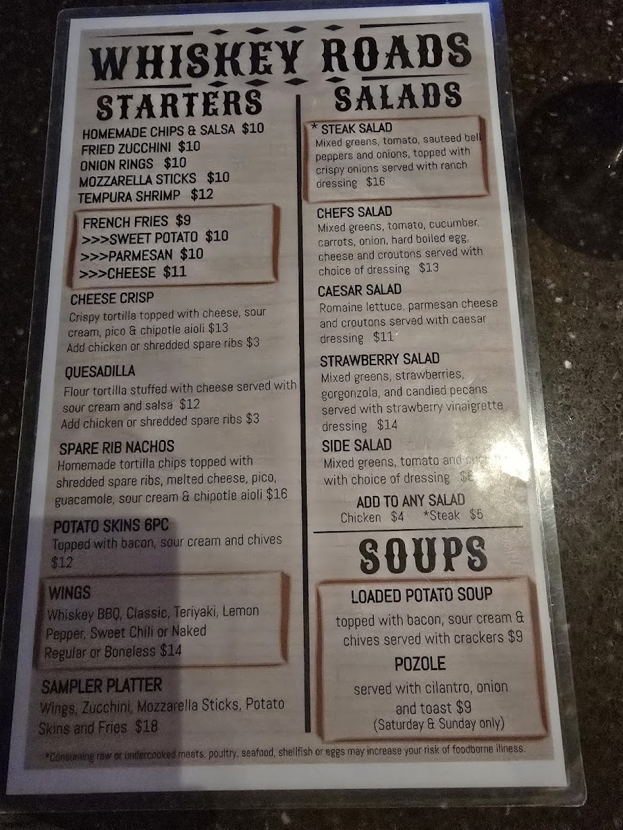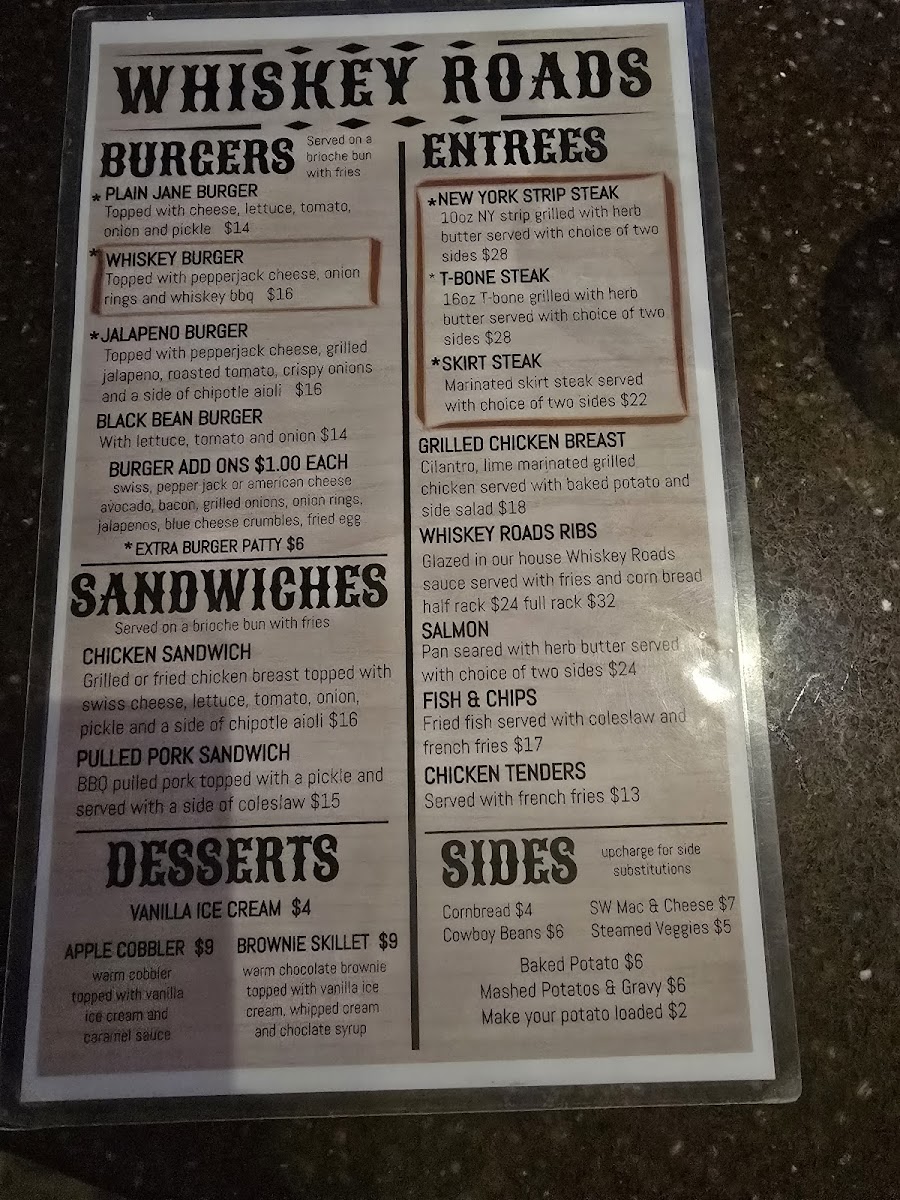 With craft cocktails, local beers, and a blend of entertainment options, Whiskey Roads truly caters to everyone, making it a must-visit for any food lover.